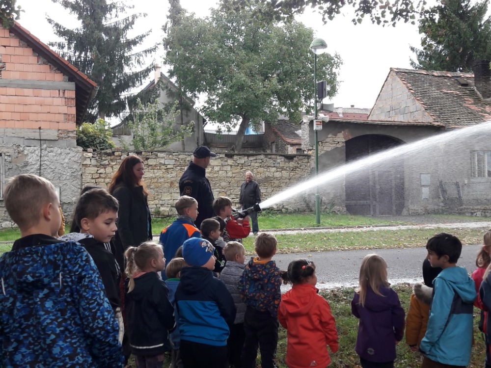 Svou návštěvou nás poctili hasiči. Dětem i žákům základní školy nejprve teoreticky vysvětlili v čem tkví jejich práce, zopakovali důležitá telefonní čísla i zásady bezpečného chování doma i v přírodě. Následovala praktická část, která probíhala venku, k prohlédnutí byl hasičský vůz a nechybělo ani stříkání z hadice.