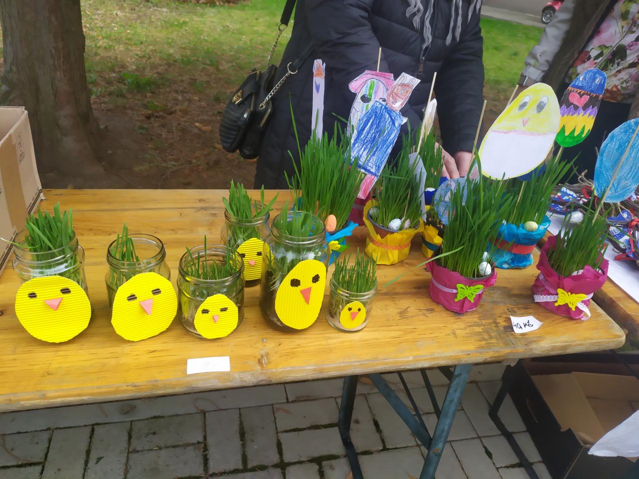 Těsně před Velikonoci měli obyvatelé Zeměch, Jimlín a další přátelé školy možnost zakoupit ručně vyráběné dekorace na svátky jara.